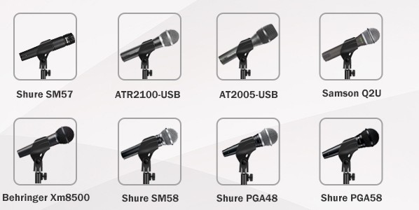 Adecuado para la mayoría de micrófonos de mano, tales como: Audio Technica ATR2100-USB, AT2005-USB, Samson Q2U, Behringer XM8500, Shure SM57/SM58 PGA48/PGA58 y otros micrófonos dinámicos.