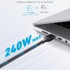 Cable USB-C a USB-C, alta velocidad, trenzado, construido para uso intensivo, carga de 240W de alta potencia, resistencia excepcional con una vida útil de 10.000 dobles, longitud de 10 ft (3m.), ideal para una amplia gama de dispositivos, marca Anker B81C7.