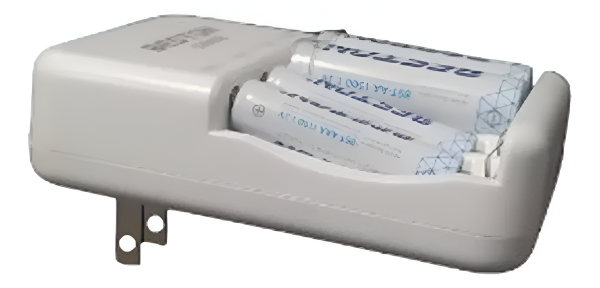 - Cargador enchufable de pared, para 1 a 4 baterías recargables AA/AAA de Ni-MH o Ni-Cad