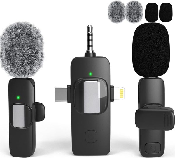 Mini micrófono de 2 piezas estilo solapa Plug&Play para iPhone, Android, tablets, cámaras