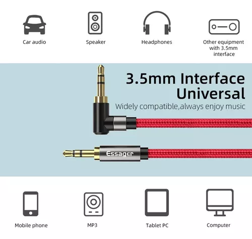 Essager, Cable de audio, conectores mini recto y 90 grados, 1.5m