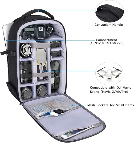 - Compatible con Nikon D5600, D5300, D3500, D3400, D3300, D3200, Canon EOS Rebel T6, T6i, SL2, compatible con DJI Mavic Drone (Mavic 2/Air/Pro), compatible con MacBook Pro 16 A2141 y la mayoría de portátiles de hasta 16″.