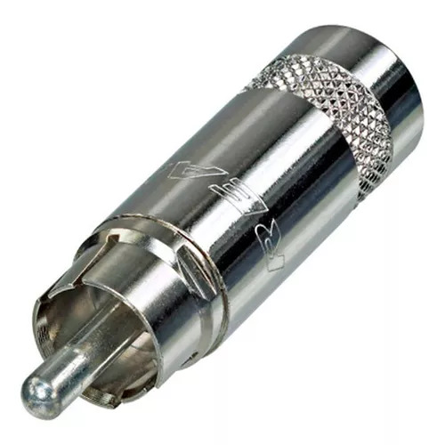 Conector Plug aéreo RCA, construcción metálica, carcasa niquelada, para uso en audio profesional, marca NEUTRIK-REAN NYS 352.