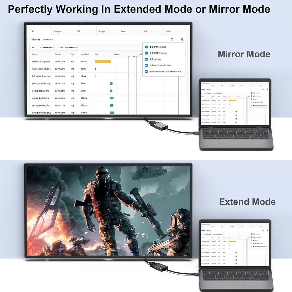 *El adaptador portátil USB 3.0 a VGA de diseño compacto conecta una computadora, computadora de escritorio, laptop u otros dispositivos con puerto USB a un monitor, proyector, TV HD u otros dispositivos con puerto VGA.